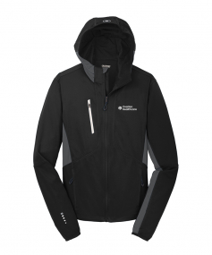 Fabric is made of 100% poly interlock bonded to poly interlock with a laminated film insert for wind and water resistance. Features 3000MM fabric waterproof rating and a 3000G/M2 fabric breathability rating.